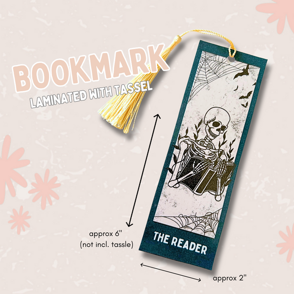 "THE READER" Skeleton Tarot Card (Green) - Bookmark with Tassel